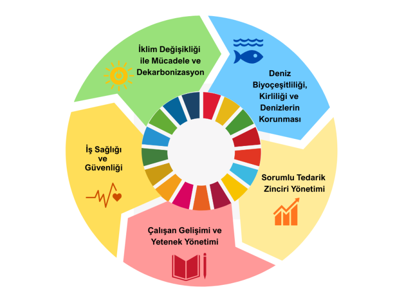 Arkas Line olarak sürdürülebilirliğe olan bağlılığımız, faaliyetlerimizin ve değerlerimizin temelinde yer almaktadır. Önceliklendirme analizimiz doğrultusunda belirlenen konular, Birleşmiş Milletler Sürdürülebilir Kalkınma Amaçları (SKA) ile güçlü bir şekilde örtüşmektedir.